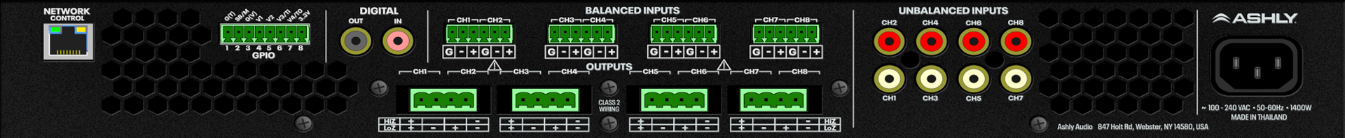 An added feature is the ability to create, save & load speaker presets to accommodate virtually any loudspeaker (including Ashly AW, IS & SP models, of course). These can be loaded independently per channel, so different speakers may be used for different zones, or satellites and subs may be used for a bar or auditorium.