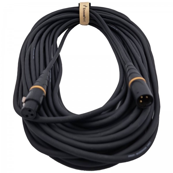 Das in Europa gefertigte Produkt ist für den rauen Bühneneinsatz konzipiert und bietet einen verbesserten Schutz gegen Staub und Wasser. Es verfügt über vergoldete XLR-Kontakte für eine hochwertige Leitfähigkeit, besseren Korrosionsschutz und erhöhte Haltbarkeit bei häufigem Stecken. Die einzelnen Lötstellen sind durch Schrumpfschläuche geschützt, um Kurzschlussfehler zu vermeiden. Durch die integrierte Bauweise hält die Zugentlastung einer wesentlich höheren Kraft stand als herkömmliche XLR Kabel. Das moderne und schlanke Design der Ummantelung ermöglicht eine verbesserte Handhabung. Darüber hinaus macht das konische Design Schluss mit durchhängenden Kabeln. Das Premium-Mikrofonkabel Enova Nxt verfügt außerdem über einen austauschbaren Farbkodierungsring (ab Herbst 2022). Mit diesem einzigartigen Feature können Veranstaltungstechniker und Musiker die Farbkodierung des Kabels jederzeit ändern, ohne dass eine umständliche Neuverkabelung notwendig ist. Das Kabel hat einen Außendurchmesser von 6.4mm ein geschirmtes Paar sauerstofffreie Kupferlitze mit 2x 0,22 mm² Leiterquerschnitt. Innenleiter mit optischer Bedeckung nom. 98 %